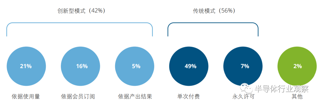 近42%的芯片被调研企业认为,需要建立订阅、按使用量收费的模式,这些理念不仅仅是芯片设计公司的认知,也包含了芯片生产及制造企业。这种理念与软件行业10-15年发生的变革如出一辙。在过去的20年中,正是这一理念,推动了软件行业的转型,塑造出众多拥有高成长性、高价值的能够形成可持续收入的商业模式。我们认为这一趋势也将渗透到芯片行业和OEM厂商领域。